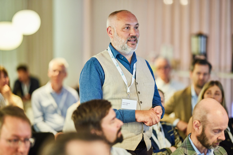 Efter inledningen samtalade Maria Malmkvist med Thina Georgsson från IKEA och James Lundström från Volvo Cars. James Lundström berättade att Volvos ambition är att vara klimatneutrala år 2040. År 2030 ska 75 procent av den resan vara gjord. Med en livscykelanalys ligger en snittbil på cirka 60 ton koldioxidutsläpp. Bilen som stod i lokalen har 24 ton koldioxidutsläpp. Den tog fyra år att utveckla och där var de lågt hängande frukterna. Nu återstår bland annat att få de material som används fossilfria eller återvunna. Stål, aluminium och batterimineraler är våra största utmaningar men på en god fjärdeplats kommer plasten. Den fossilbaserade plasten går att ersätta med biobaserade material och för det krävs tillgång på biogas.